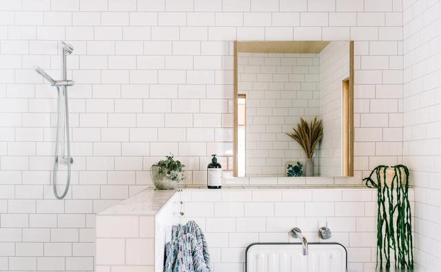 低揮發性有機化合物、零甲醛的白色膠合板櫥柜、地鐵瓷磚的后擋板和石材臺面貫穿整個廚房。