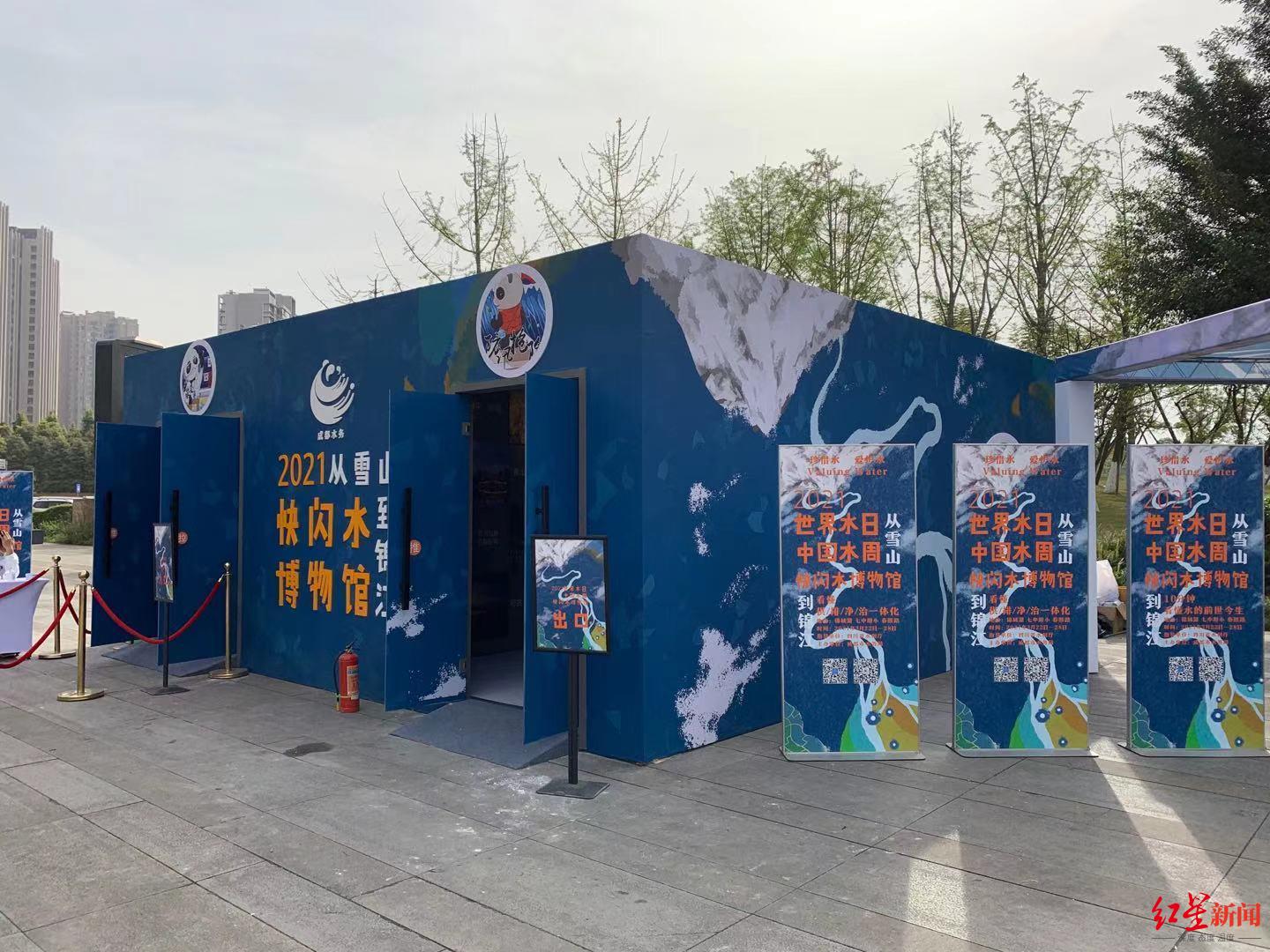 從外表看上,坐落在錦城湖上的快閃博物館顯得有點平平無奇,但走進一看,里面卻是“別有洞天”。在現場,由四個集裝箱改造而成的博物館內,劃分成“供”“排”“凈”“治”四個微型展廳,內部由燈帶串起,通過模型、投影、3D打印等技術,展示水在途經都江堰、自來水廠、千家萬戶,再進行污水處理等環節,重現了水的一生。