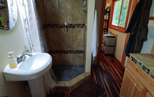 Jaimie和Dave的家里,最令我神往的,還要屬臥室外面的這個(gè)露天陽臺(tái)。這個(gè)由于上下兩個(gè)集裝箱體型差而形成的空地,是兩個(gè)人絕佳的風(fēng)景觀賞位和休憩之所。在這里,一眼望去就是無盡的山谷風(fēng)景。兩個(gè)人常常在這里享用早上的咖啡或者晚上的美食,一切都是這么的悠然而愜意。