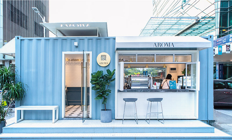 干凈簡潔的室內風格加上占據集裝箱整個側面的透亮玻璃窗,顯得 Aroma 的小空間一點不擁擠,反而還多了些溫馨。